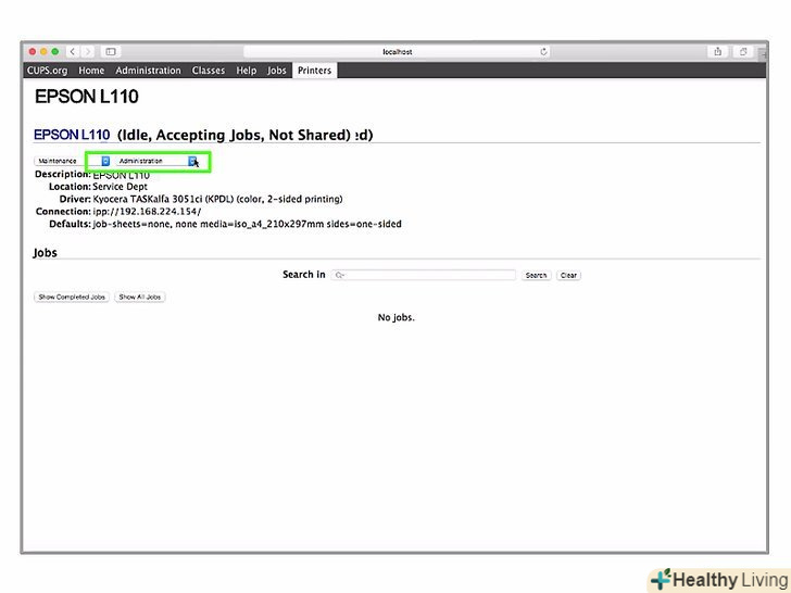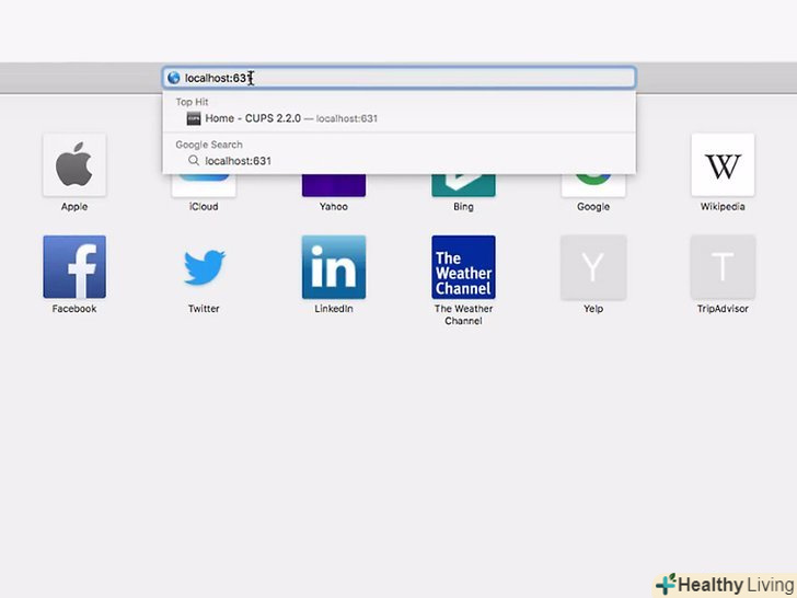 Перейти на сторінку Local Host 631. Відкрийте веб-браузер, введіть http://localhost:631/ в адресному рядку браузера та натисніть ⏎ Return.