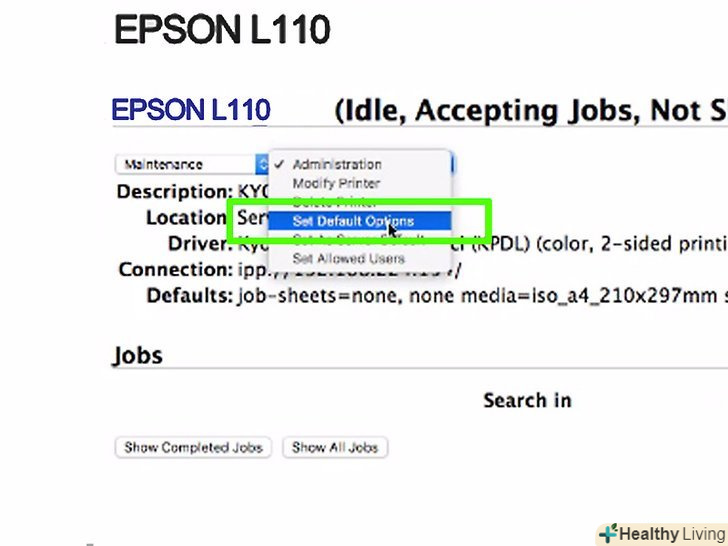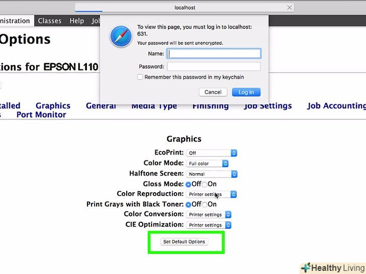 НатиснітьSet Default Options (встановити параметри за замовчуванням).ця опція знаходиться в нижній частині розділу "Основні". Налаштування будуть збережені і набудуть чинності для принтера Epson.- Можливо, Вам буде запропоновано ввести адміністративні ім'я користувача та пароль. Зазвичай це ім'я користувача та пароль, за допомогою яких ви входите в систему.