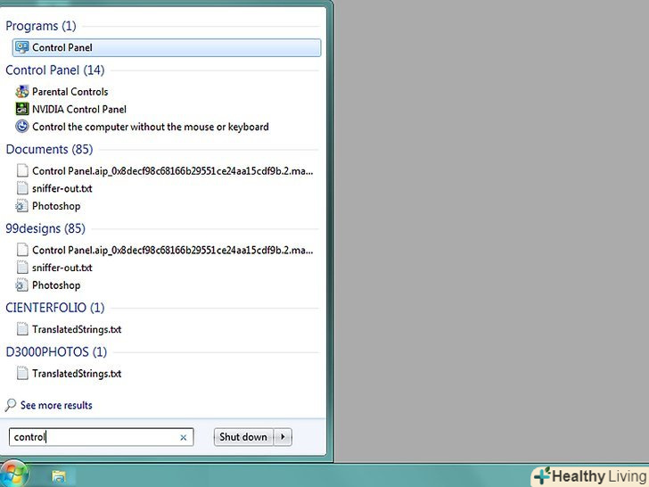 Введітьпанель управління.почнеться пошук утиліти»Панель управління".