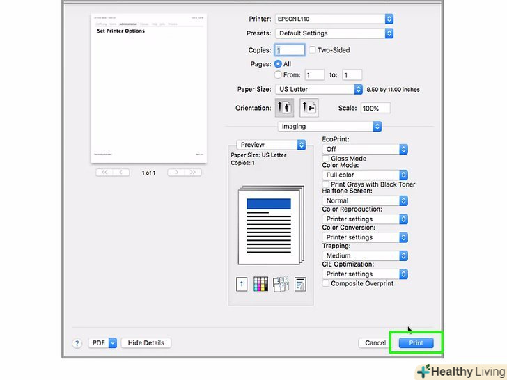 Клацніть поOK.ця кнопка знаходиться в нижній частині вікна. Налаштування будуть збережені, а вікно "налаштування друку" закриється.