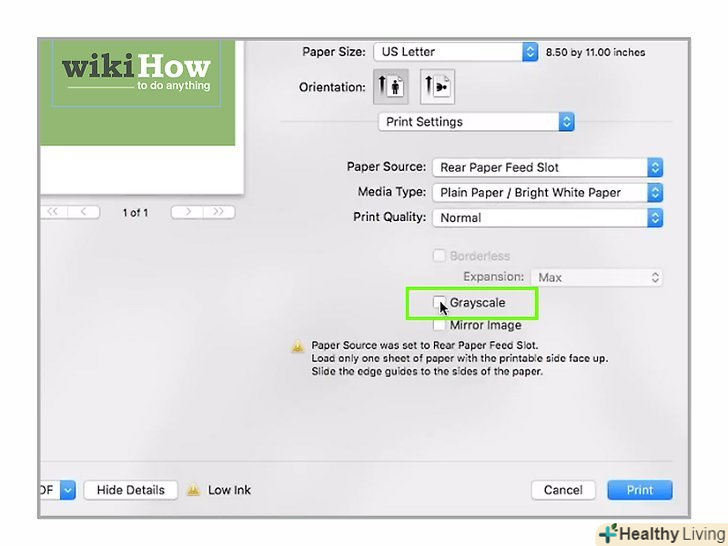 Встановіть прапорець біля опції "чорно-білий»або "сірий".як правило, ця опція (або меню) розташована посередині сторінки.- Якщо зазначеної опції на вкладці «Колір» немає, перейдіть на вкладку "папір / якість «і знайдіть опцію» чорно-білий «або»сірий".