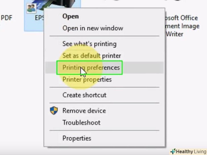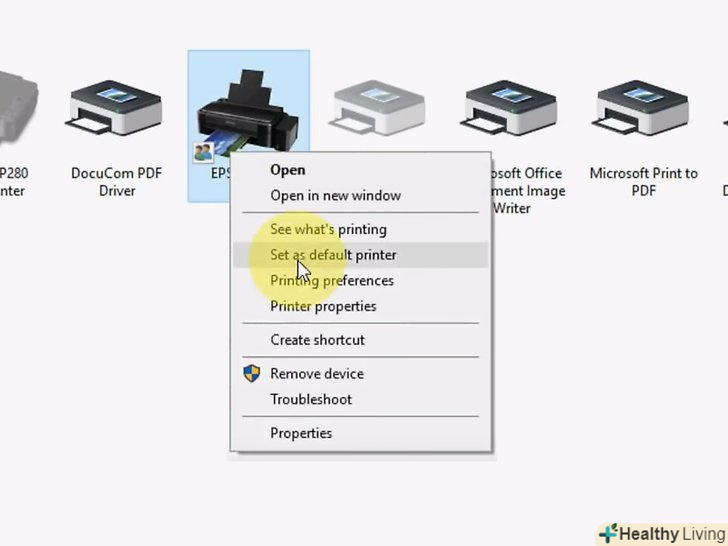 Клацніть правою кнопкою миші на ім'я принтера.відкриється випадаюче меню.- Якщо у миші немає правої кнопки, клацніть по правій стороні миші або клацніть по ній двома пальцями.