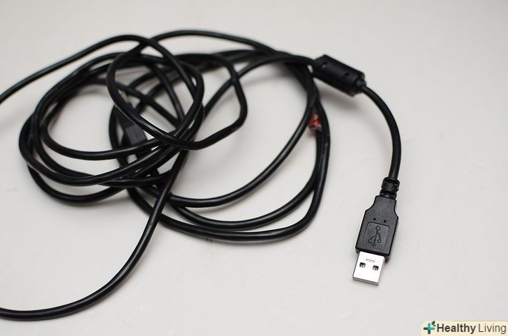Приготуйте USB-кабель для підключення Macbook до принтера.у комплекті до принтера повинні йти два кабелі: шнур живлення і кабель USB. Візьміть кабель з квадратним входом.