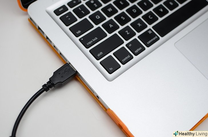 Вставте USB кабель в Macbook.знайдіть на бічній панелі Macbook Pro квадратний отвір. Вставте USB кабель від принтера в цей отвір.