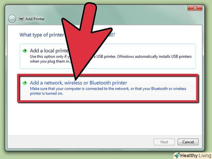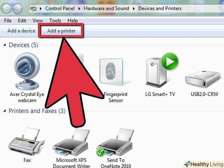 У Devices and Printers натисніть 'Add a printer'.це дозволить вам додати принтер, найбільш близький до вас в бездротовій мережі.
