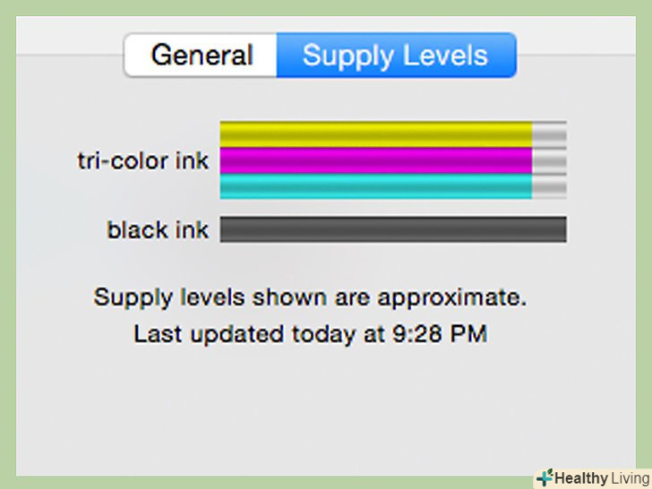 Запустіть програму для принтера і знайдіть вкладку "оцінка рівня чорнила".- Якщо ви використовуєте комп'ютер від Apple, цю вкладку можна знайти в System Preferences Application під "апаратні засоби".