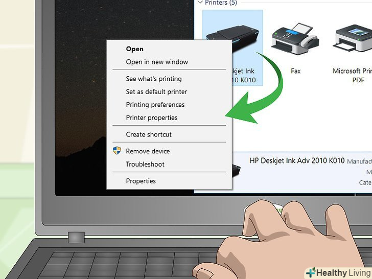 Відкрийте меню принтера. під заголовком "принтери", вгорі вікна, клацніть правою кнопкою миші по принтеру, який потрібно прочистити. Після цього на екрані з'явиться меню, що випадає.- Якщо у вас миша без правої кнопки, натисніть на праву сторону миші або натисніть на мишу двома пальцями.
