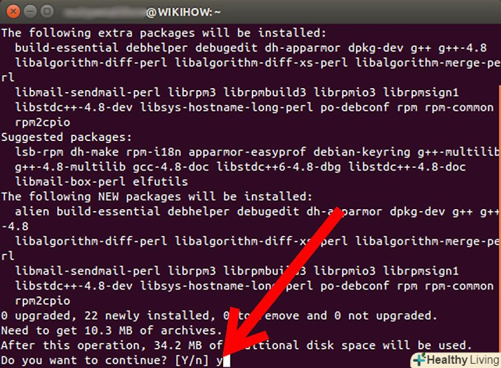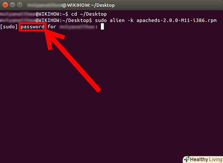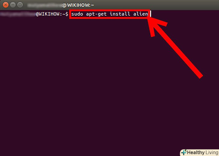 Для установки Alien, введіть наступну команду в терміналі: sudo apt-get install alien (потім натисніть Enter).