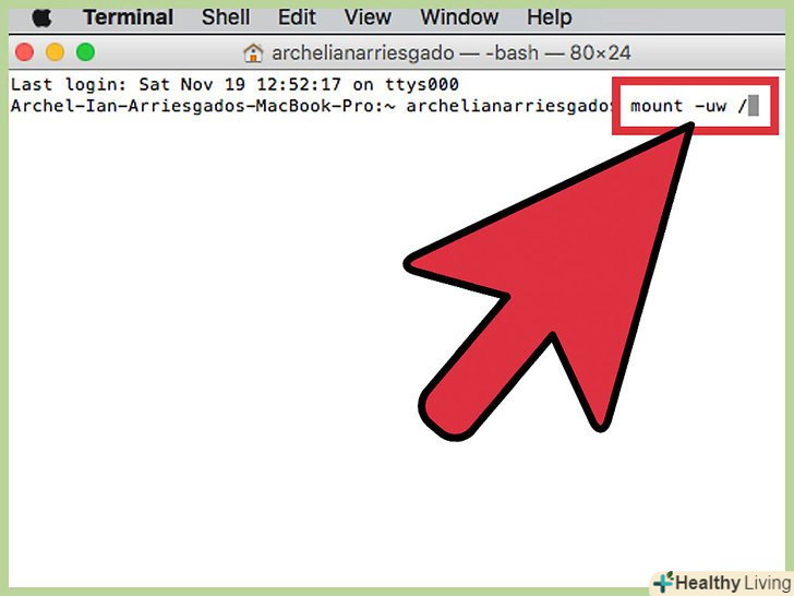 Введіть.mount -uw / І натисніть клавішу ⏎ Return.це дозволить вам вносити зміни в файлову систему.