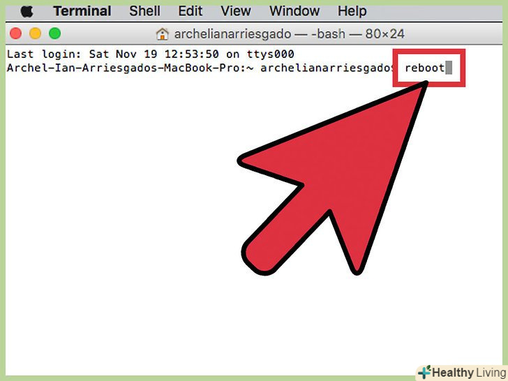 Введіть.reboot І натисніть клавішу ⏎ Return.це перезавантажить ваш комп'ютер і завантажить операційну систему за замовчуванням. Тепер обліковий запис адміністратора буде працювати під іншим паролем.[2]