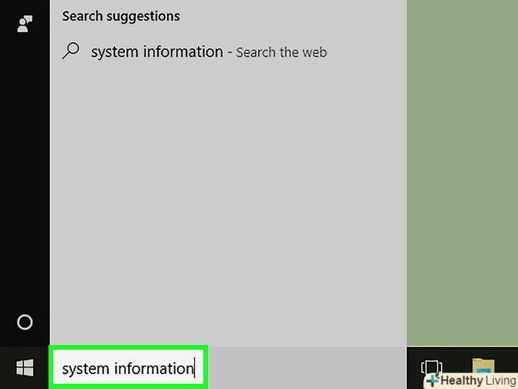 У рядку пошуку введітьвідомості про систему. рядок пошуку знаходиться в нижньому лівому куті екрана.