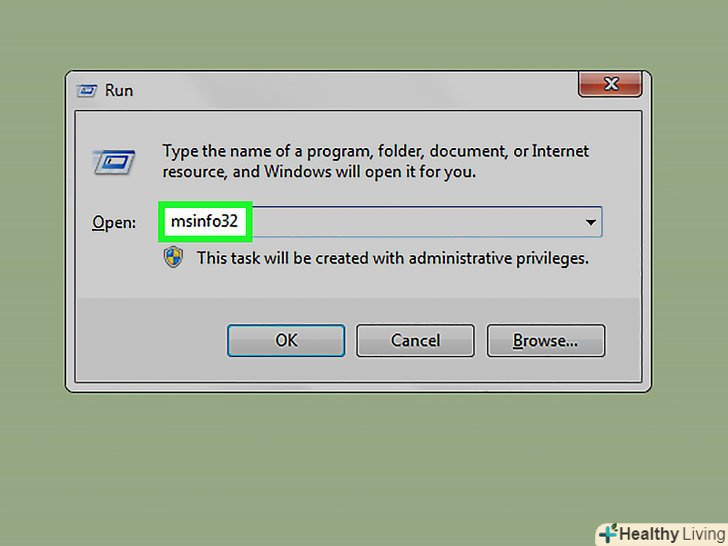 Введітьmsinfo32 у вікні «Виконати».ця команда відкриє вікно з інформацією про систему.