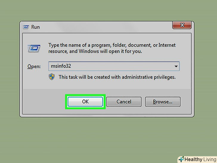 Клацніть по < span class="nowrap" title="This is not a clickable button; it illustrates the button one should find." style="font-family: Segoe UI, Frutiger, Frutiger Linotype, Dejavu Sans, Helvetica Neue, Arial, sans-serif;letter-spacing:0px;padding:0em .6em; border:1px solid; border-color:#AAA #555 #555 #AAA; -moz-border-radius: 0px; -webkit-border-radius: 0px; border-radius: 0px; background-color: #F2F2F2; background-image: -moz-linear-gradient(top, #FCFCFC, #E0E0E0); background-image: -o-linear-gradient(top, #FCFCFC, #E0E0E0); background-image: -webkit-linear-gradient(top, #FCFCFC, #E0E0E0); background-image: linear-gradient(top, #FCFCFC, #E0E0E0);">OK.ця кнопка знаходиться в нижній частині вікна "Виконати". Відкриється вікно "відомості про систему".