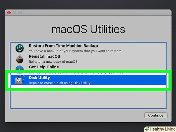 Виберіть "Дискова утиліта «і натисніть»Продовжити".