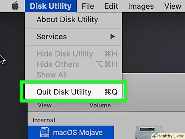 Натисніть на "Дискова утиліта «і виберіть»Вийти".так ви закриєте вікно "Дискова утиліта".