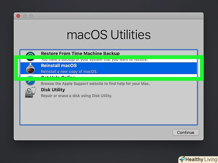 Натисніть на "перевстановити OS X«, а потім натисніть»Продовжити".