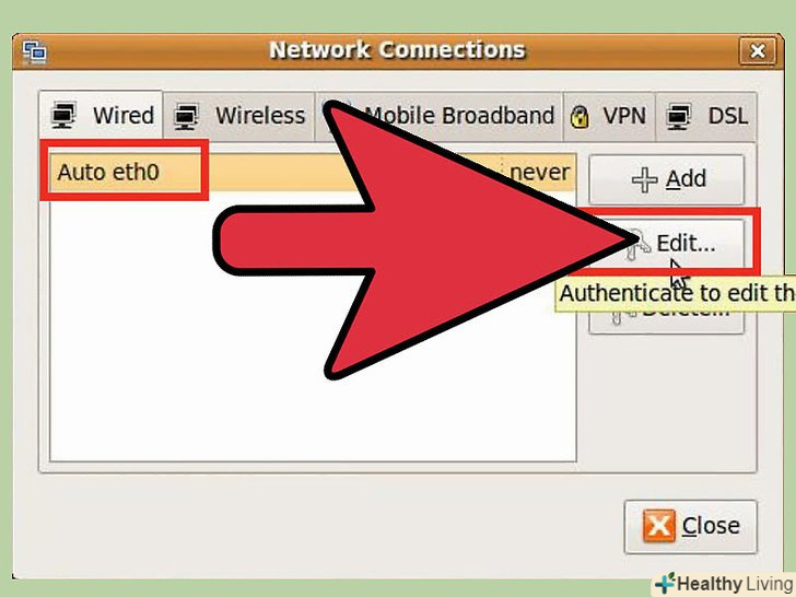 Under the “Wired” tab, click on “Auto eth0” and select “Edit."