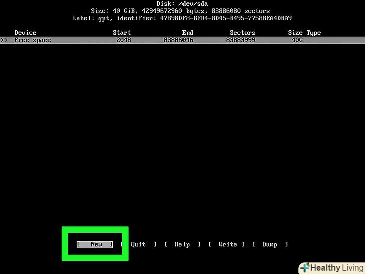 Створіть swap-розділ.цей розділ буде працювати як оперативний запам'ятовуючий пристрій системи Arch Linux. Для цього:- Виберіть «New» (створити) і натисніть↵ Enter;