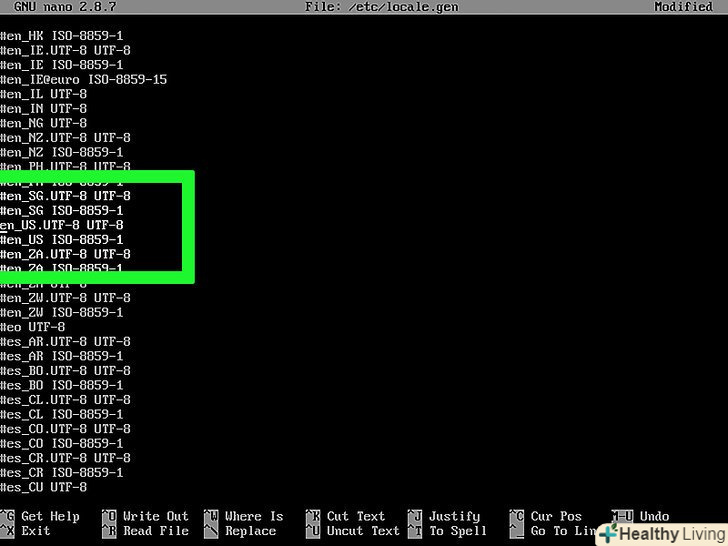 Виберіть мову системи. для цього:- Введітьnano /etc/locale.gen і натисніть ↵ Enter;