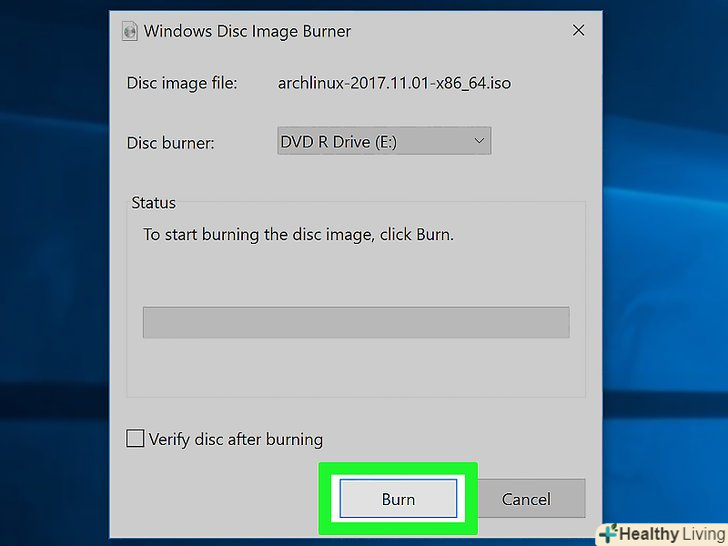 Запишіть завантажений образ на чистий DVD-диск .коли образ Arch Linux завантажиться, запишіть його на чистий DVD-диск за допомогою оптичного приводу комп'ютера. Коли диск буде записаний, залиште його в приводі.- Якщо на комп'ютері немає DVD-приводу, купіть зовнішній оптичний привід і підключіть його до комп'ютера через USB-кабель.