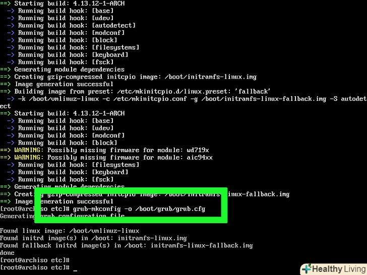 Створіть файл конфігурації для GRUB. введіть grub-mkconfig-o /boot/grub/grub.cfg і натисніть ↵ Enter.