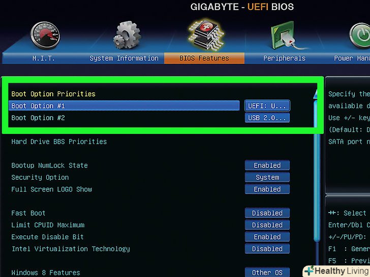 Виберіть інсталяційний DVD-диск як основний завантажувальний пристрій. в меню виділіть відповідну опцію, наприклад, «DVD Drive» (DVD-привід) або «Disk Drive» (оптичний привід), а потім натискайте на клавішу + до тих пір, поки ця опція не опиниться у верхній частині меню.- Пропустіть цей крок на комп'ютері Mac.