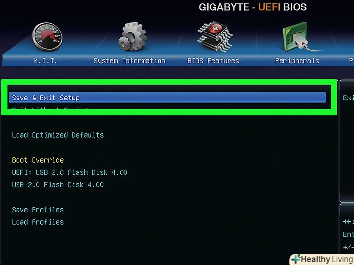 Збережіть внесені зміни і вийдіть з BIOS. для цього натисніть відповідну клавішу, яка відображається в нижній частині екрана або в правому нижньому кутку екрану. Комп'ютер буде перезавантажений.- Пропустіть цей крок на комп'ютері Mac.