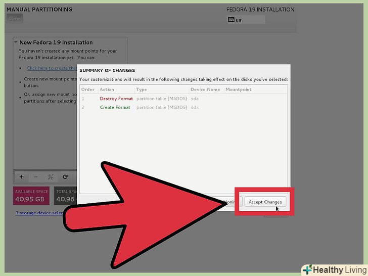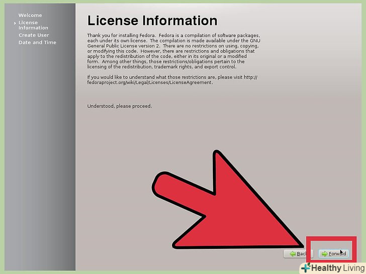 - Установка Fedora може призвести до видалення будь-якої іншої операційної системи, встановленої на вашому комп'ютері; тому створіть резервну копію всіх важливих даних.[3]
