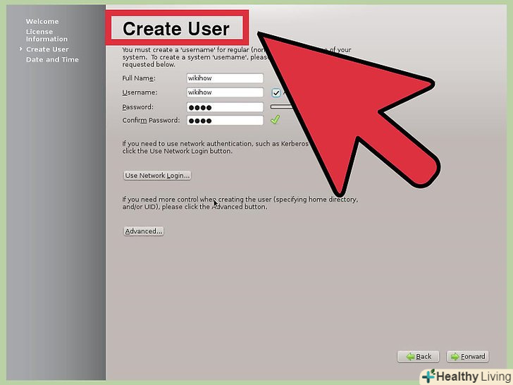 Натисніть "Forward". на екрані «Create user» введіть ім'я користувача та пароль.