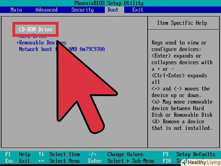 Змініть налаштування BIOS.Перезавантажте комп'ютер і під час його завантаження натисніть F2 або Delete (або іншу клавішу для входу в BIOS на вашому комп'ютері). В BIOS виставте флешку або оптичний привід першим завантажувальним пристроєм.
