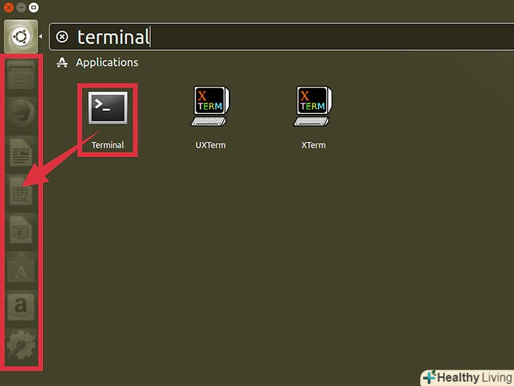 Найшвидший спосіб відкрити термінал Ubuntu-використовувати основні поєднання клавіш. Термінал також можна відкрити з панелі Dash або через ярлик на панелі швидкого запуску. На старих версіях Ubuntu термінал можна знайти в папці "Applications".