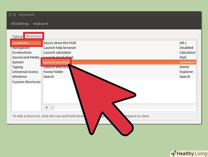 - Виберіть категорію "введення«, а потім виділіть»запустити термінал".