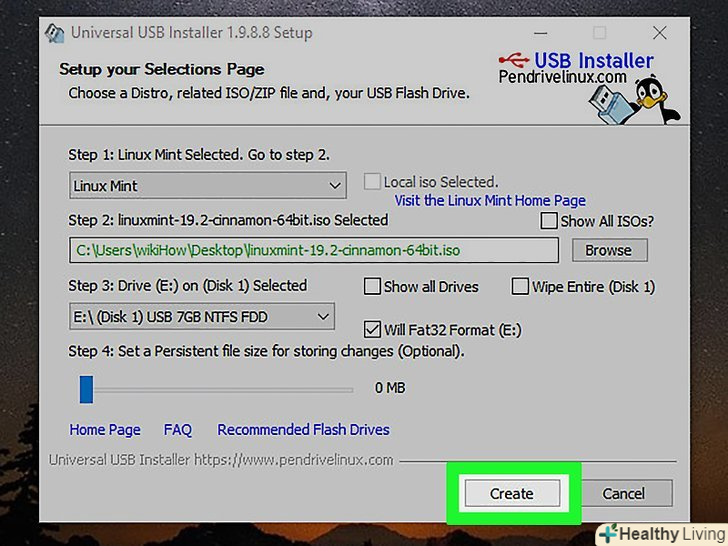 Створіть завантажувальний флеш-накопичувач.відкрийте меню «Step 1 "(Крок 1), Натисніть "Linux Mint" , а потім виконайте наступні дії:- Натисніть " Browse "(огляд);