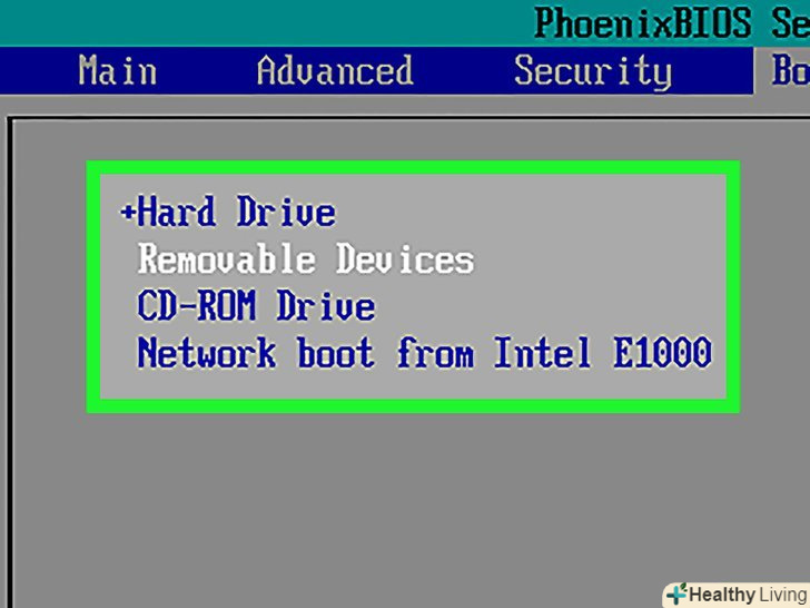 Перемістіть накопичувач в початок списку завантажувальних пристроїв. Виберіть опцію «USB Drive» (або аналогічну), а потім натискайте на клавішу + до тих пір, поки ця опція не виявиться у верхній частині списку завантажувальних пристроїв.- Якщо це не спрацювало, подивіться на список клавіш і їх функціональність в правій (або нижній) частині екрана, щоб дізнатися, яка клавіша переміщує обрану опцію.