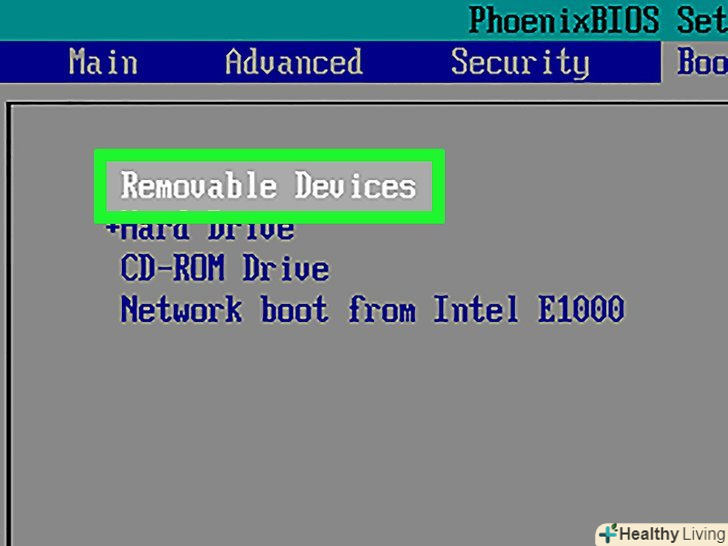 Виберіть флеш-накопичувач, підключений до комп'ютера. він повинен називатися як " USB Drive "(Флеш-накопичувач) « " USB-disk "(USB-диск), «Removable Storage» (знімний накопичувач) або аналогічно. За допомогою клавіш зі стрілками виберіть відповідну опцію.