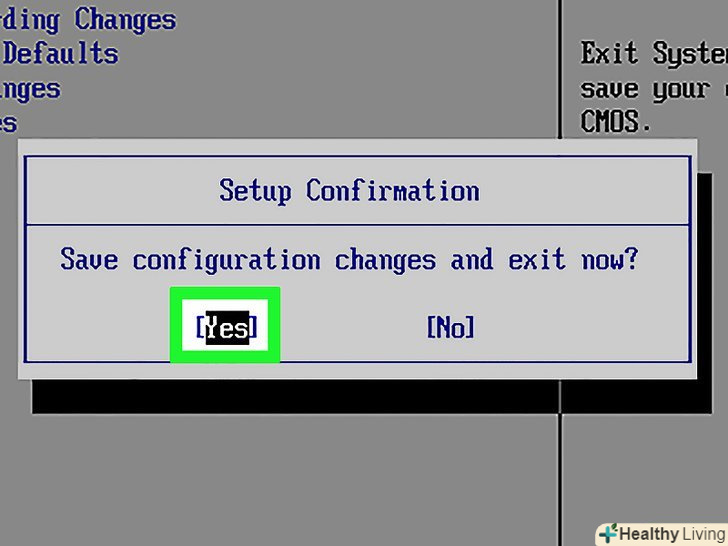 Збережіть внесені зміни і вийдіть з BIOS. для цього потрібно натиснути певну клавішу-щоб з'ясувати яку, подивіться на список клавіш і їх функціональність в правій (або нижній) частині екрана. Тепер можна завантажити Linux.- На деяких комп'ютерах потрібно натиснути додаткову клавішу (коли з'явиться запит), щоб підтвердити свої дії.