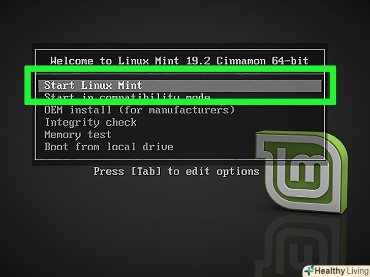 Виберіть опцію "Linux Mint".наприклад, якщо ви встановлюєте Linux Mint 18.3, виберіть опцію " Boot linuxmint-18.3-cinnamon-64bit».- Назва цієї опції залежить від версії Linux Mint і розрядності процесора.