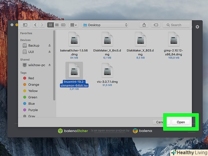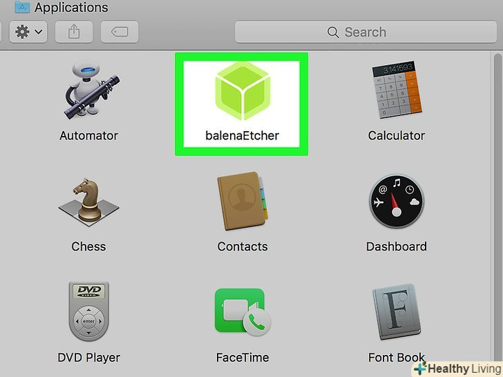Запустіть програму Etcher.вона знаходиться в папці «програми».