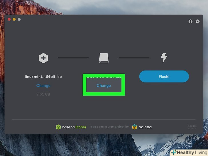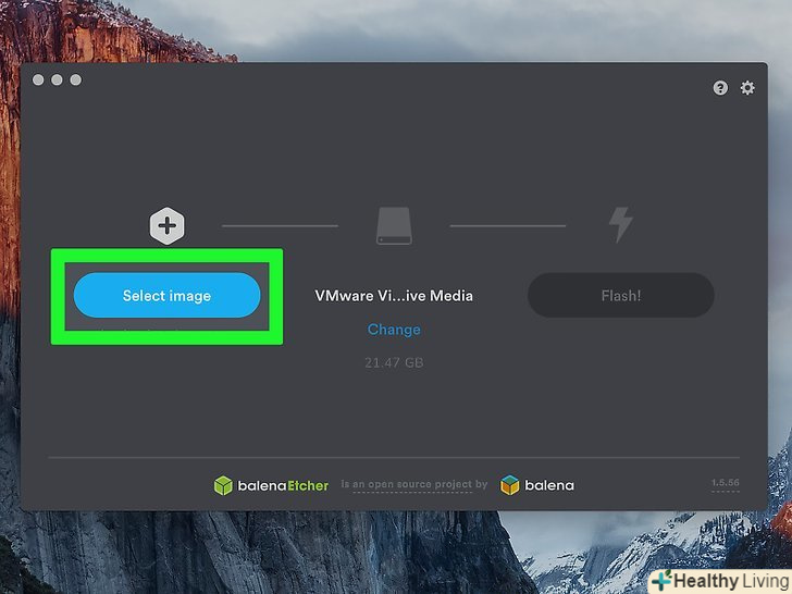 НатиснітьSelect image (вибрати образ).ця синя кнопка знаходиться в лівій частині вікна Etcher.