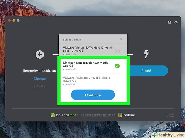 Виберіть флеш-накопичувач.натисніть на його ім'я, а потім натисніть "Продовжити" в нижній частині вікна.