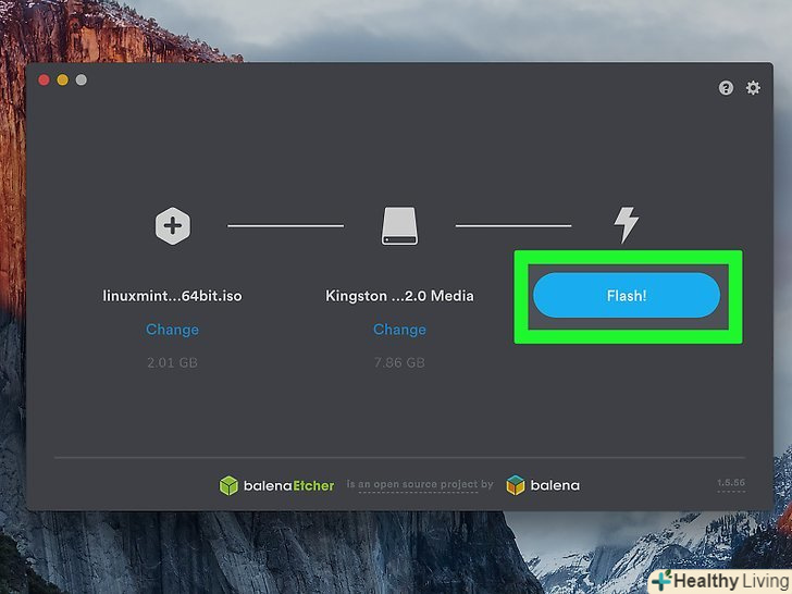 НатиснітьFlash! (записати).ця синя кнопка знаходиться на правій стороні вікна Etcher. Буде створений завантажувальний флеш-накопичувач з системою Linux Mint, тобто її можна встановити безпосередньо з накопичувача.