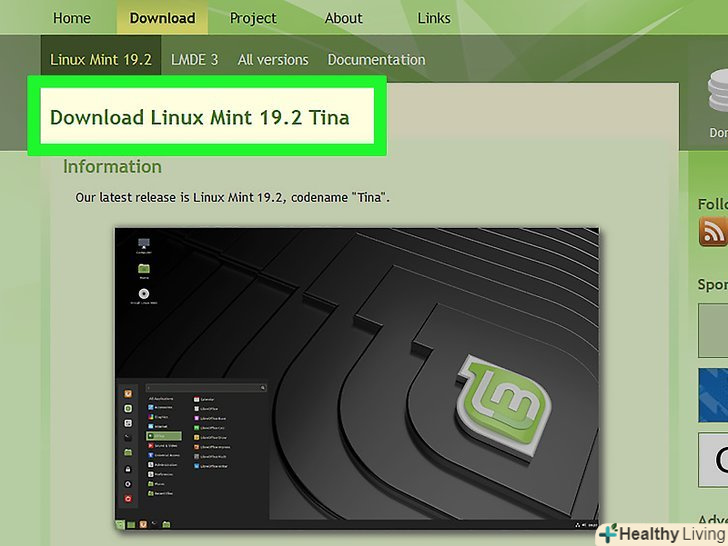 Скачайте образ (ISO-файл) системи Linux Mint. перейдіть на сторінку https://linuxmint.com/download.php, праворуч від "Cinnamon «натисніть» 32-bit «(32-розрядна) або» 64-bit" (64-розрядна) (залежно від розрядності процесора), а потім натисніть на регіональне посилання в розділі «Mirror» (дзеркало).- Для комп'ютера Mac виберіть опцію " 64-bit».