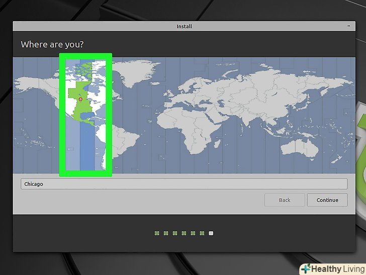 Виберіть часовий пояс.натисніть на вертикальну смугу, яка покриває ваш населений пункт, а потім натисніть «Продовжити» в нижньому правому куті.