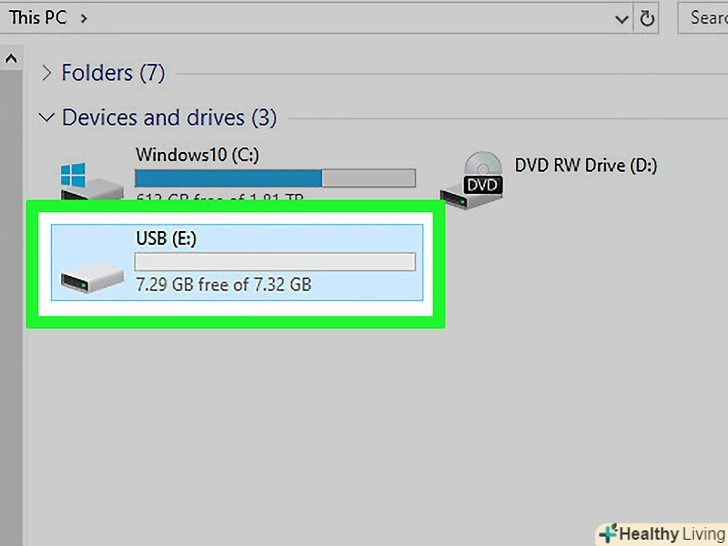 Підключіть флеш-накопичувач до комп'ютера.підключіть накопичувач до USB-порту комп'ютера, який знаходиться на передній, бічній або задній панелі корпусу комп'ютера.- Для комп'ютера Mac знадобиться флеш-накопичувач USB-C (або адаптер USB3–USB-C).