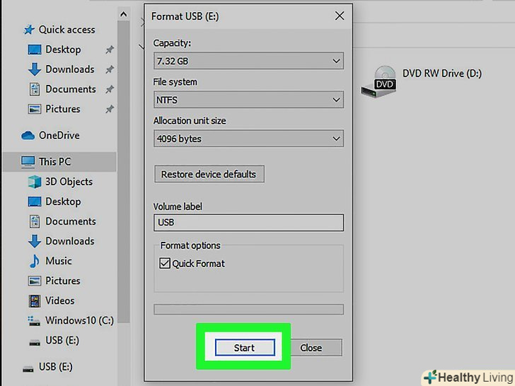 Відформатуйте флеш-накопичувач.Вся інформація, яка зберігається на ньому, буде видалена. Не забудьте вибрати відповідну файлову систему:- Windows - виберіть "NTFS" або»FAT32";