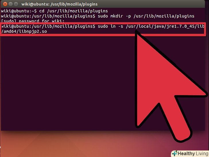 - Це створить посилання між Java JRE( Java Runtime Environment ) плагіномLibnpjp2.so і браузером Mozilla Firefox