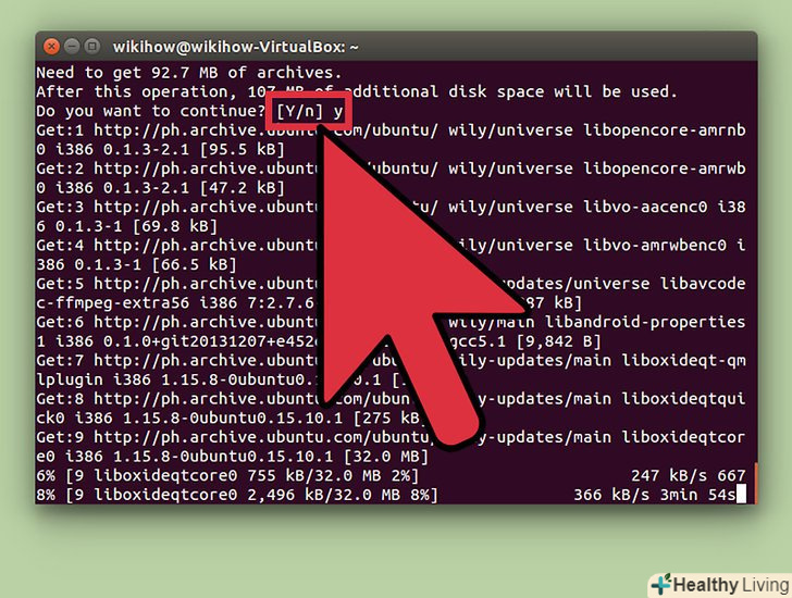 - Запустіть термінал і введіть " sudo apt-get install vlc "(без лапок). Вкажіть пароль від свого облікового запису, коли вас про це попросять, щоб почати установку програми.[1]