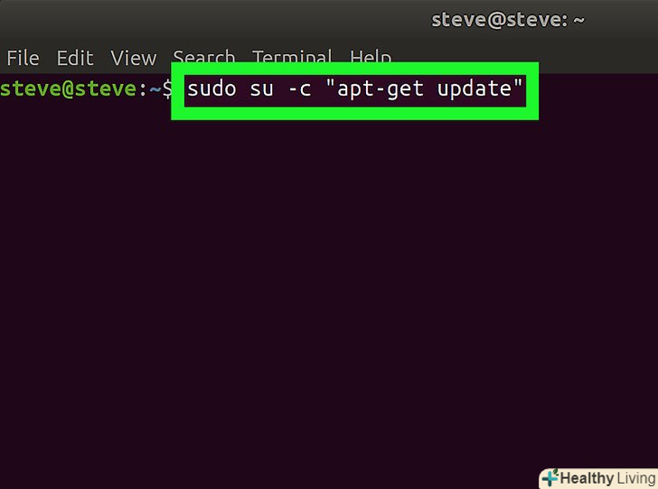 Введіть команду в терміналі. Команда:sudo su-c "apt-get update" . Тепер натисніть Enter. Ця команда перевірить наявність нових оновлень в репозиторії.[1]