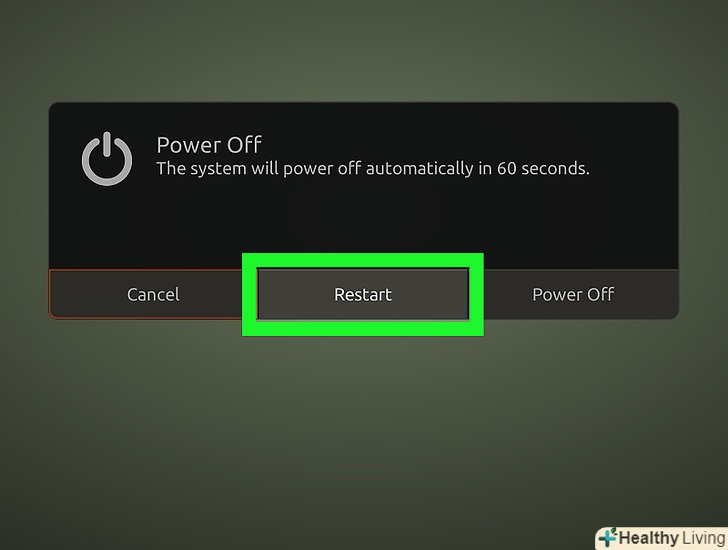 Перезавантажте Ubuntu.зробіть це, щоб отримати доступ до меню GRUB. Щоб перезапустити Ubuntu, клацніть по значку у вигляді шестерінки в лівому верхньому кутку, а потім в меню виберіть»Вимкнути".
