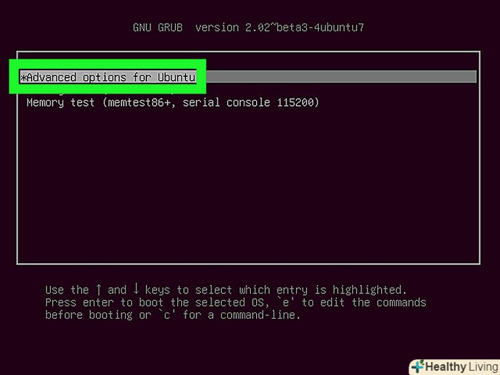 ВиберітьAdvanced Options for Ubuntu (Додаткові параметри Ubuntu).це друга опція в меню GRUB.